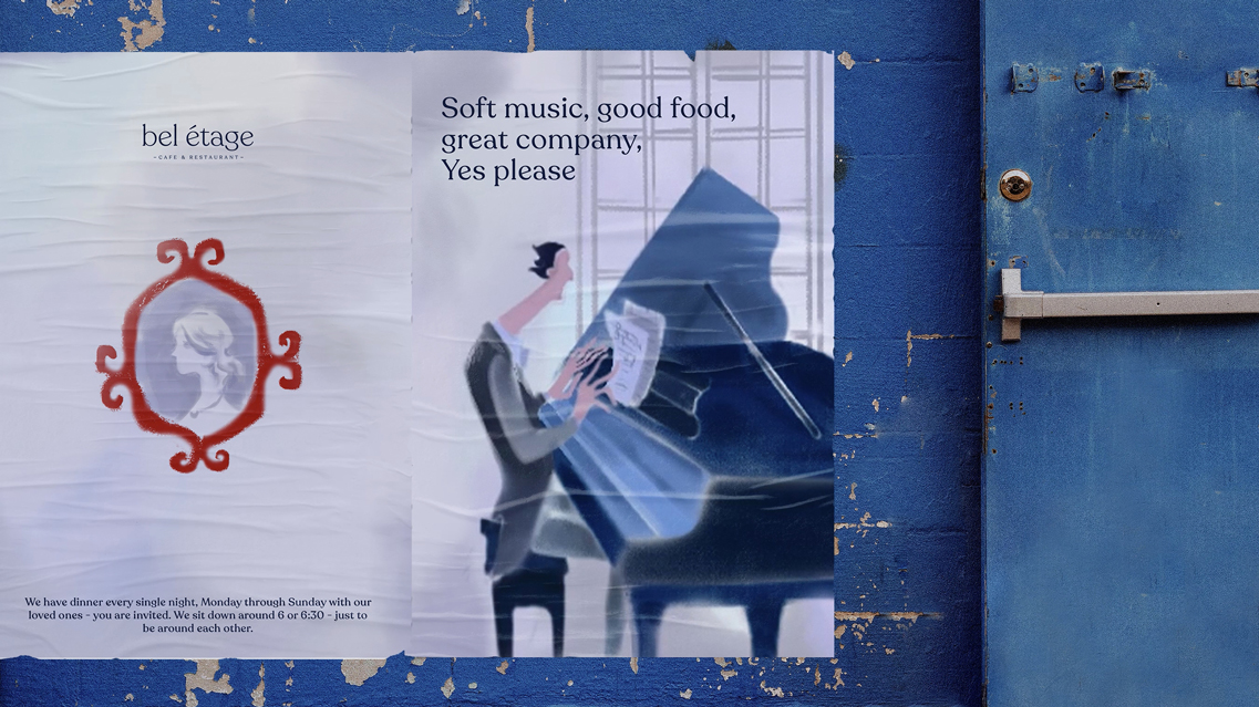經(jīng)過長時間的頭腦風(fēng)暴會議,我們開發(fā)了以下解決方案。收集了多年來訪問 Beletage 的人們的角色,我們得出了主要想法。由于他們每個人在餐廳的悠久歷史中都有自己獨特的位置,我們對它們進(jìn)行了重新設(shè)計,使其成為 Beletage 品牌不可或缺的一部分。我們的團(tuán)隊創(chuàng)造了不同的有趣角色,傳遞Beletage的優(yōu)雅和正能量,旨在以獨家內(nèi)容區(qū)分品牌。我們還選擇簡單但豐富的顏色,可以由當(dāng)?shù)厣a(chǎn)印刷。