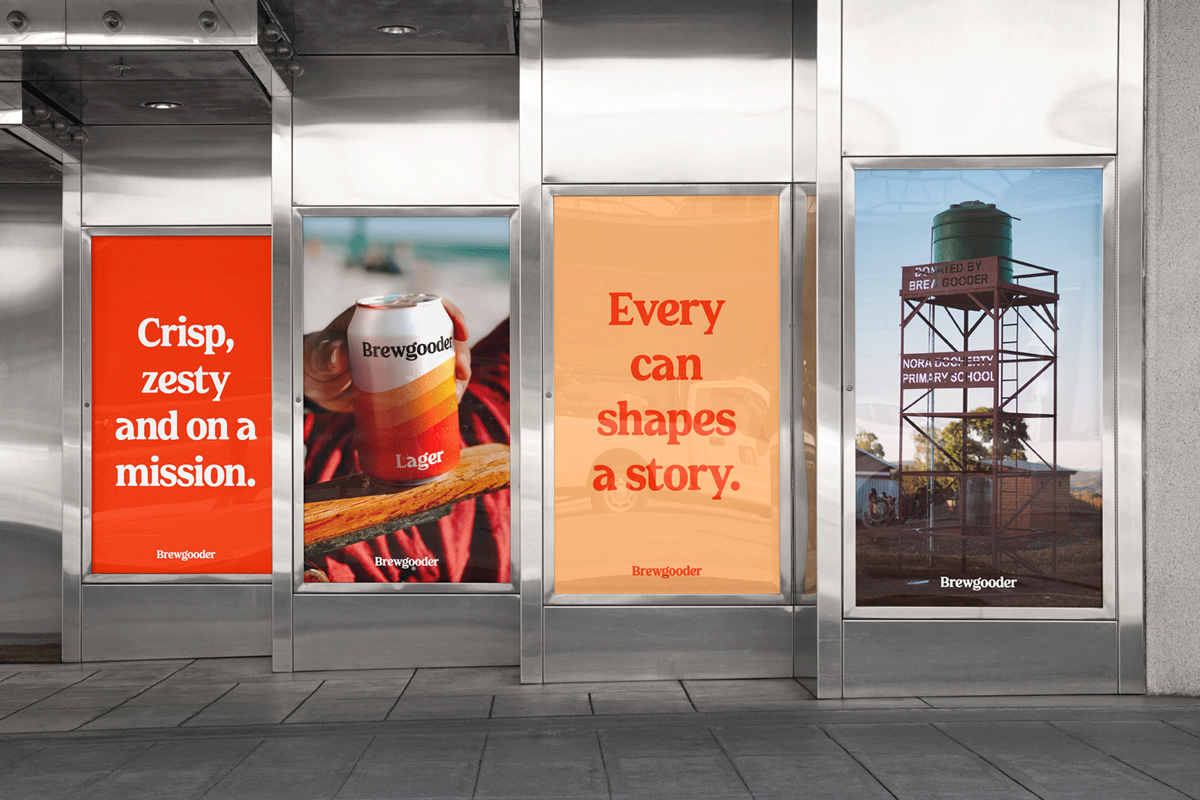 品牌設計調色板時,我們將Brewgooder橙色定義為我們的英雄色。溫暖,樂觀和積極的象征,再加上淡淡的白色,立即成為該品牌愿景的捷徑。它遍及核心啤酒和品牌世界,建立了整體凝聚力,并使品牌在類別中獨樹一幟。