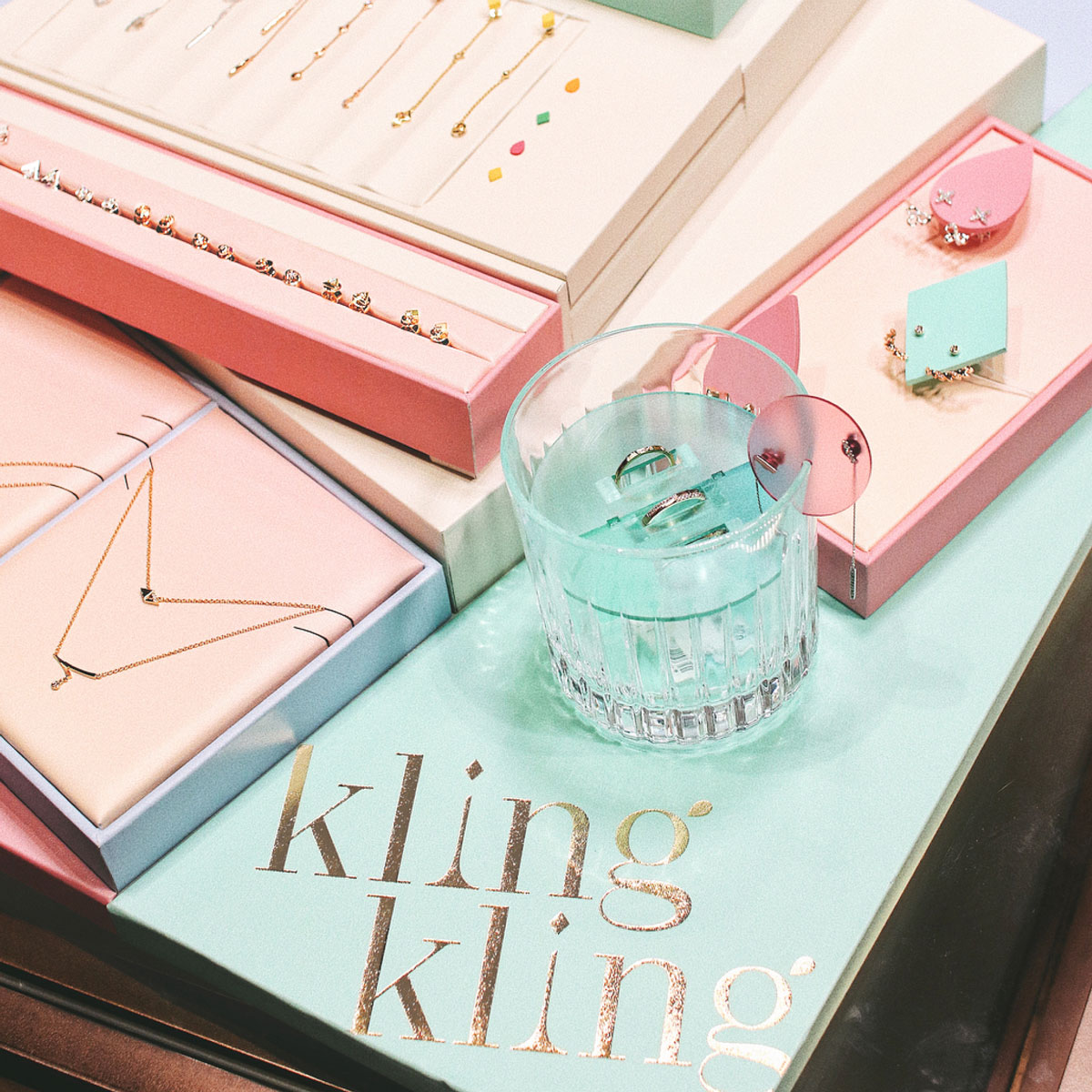 為了與喜歡社交的年輕工人階級女性交流,我們想到了“ Kling Kling”這個名字,類似于玻璃烘烤和叮當響,并且隨著珠寶的叮當響而倍增。從那里開始,我們從最喜歡的雞尾酒中汲取靈感,設(shè)計了一系列外圍設(shè)備,并保持清醒直至完成。我們?yōu)樗麄冏龅陌b采用透明的漸變來暗示不同雞尾酒的驚人顏色。