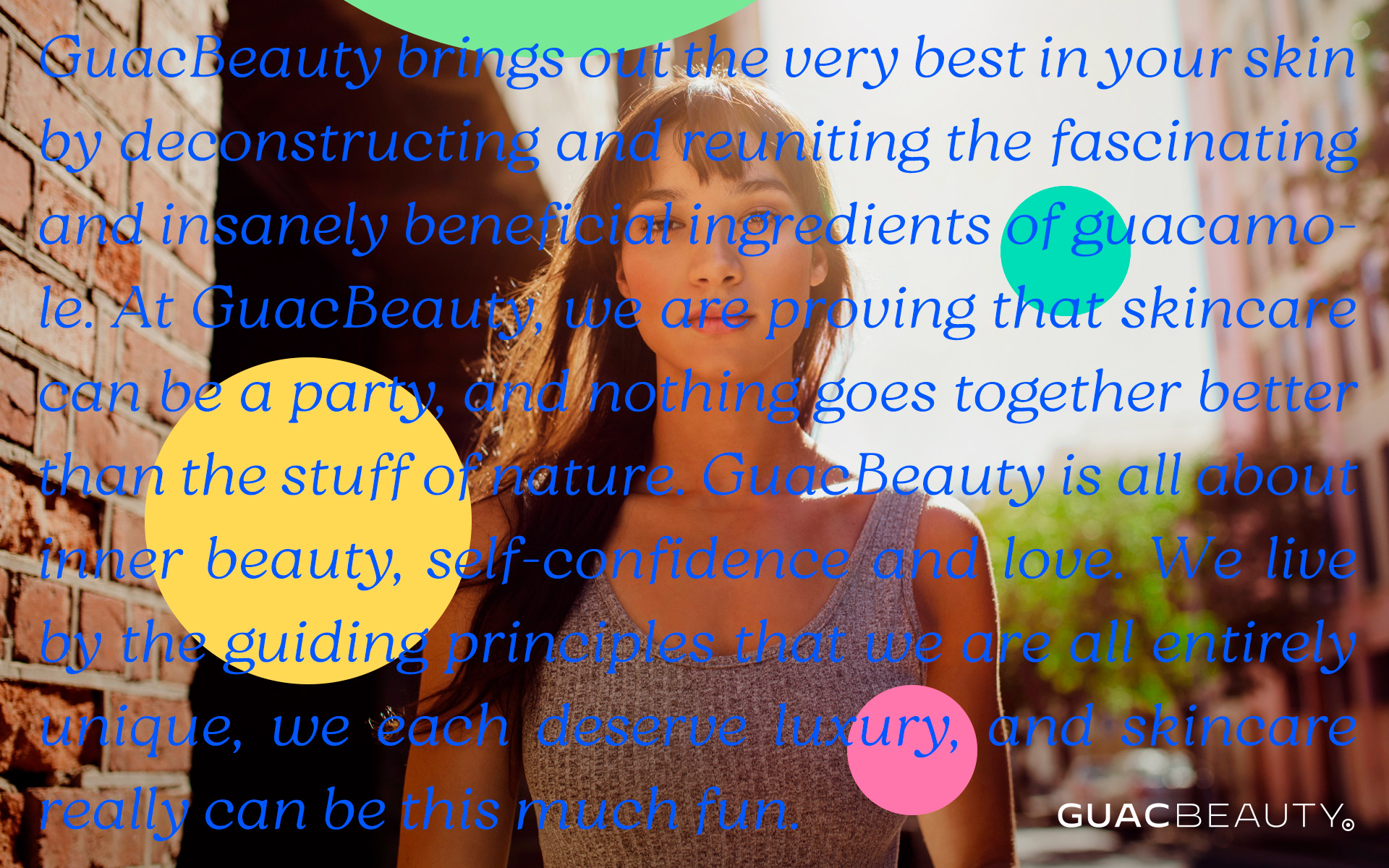 在GuacBeauty,我們不僅要建立能夠有效滋養(yǎng),補(bǔ)充和保護(hù)肌膚的高級(jí)護(hù)膚產(chǎn)品線,而且還要做更多的工作。從一開始,我們就致力于創(chuàng)造一種優(yōu)化的生活方式,這種生活方式首先要欣賞內(nèi)部,然后才能向外欣賞。一種通過身體的身心健康來(lái)衡量崇高舒適度的方法;一種鼓勵(lì)更大的同情能力的人;在安靜的沉默意識(shí)和積極積極的影響之間取得平衡。