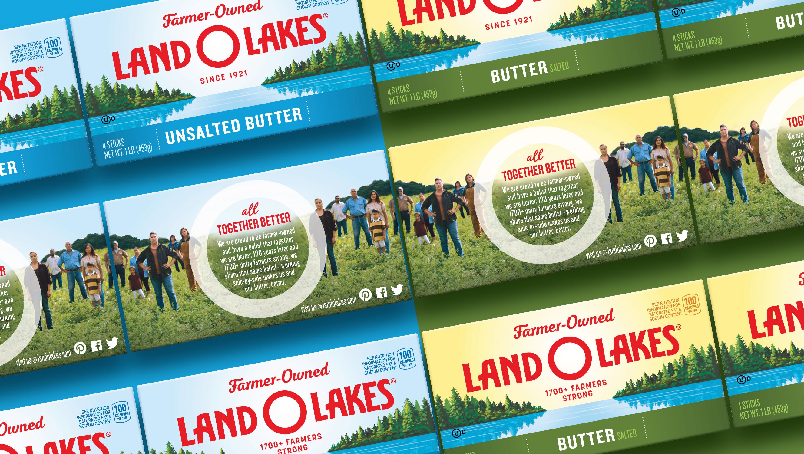 CBX的方法涉及增強和完善該品牌最強大的一些資產(chǎn),并將其與重點含義和引人入勝的攝影相結(jié)合。他們將“農(nóng)場主”直接與包裝上的品牌商標(biāo)聯(lián)系在一起,同時使用實際的Land O'Lakes農(nóng)場的攝影作品講述了一個關(guān)于簡單善良的更廣闊的故事,完全取代了處女的插圖。